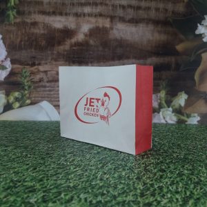 Kantong Kertas Jet Chicken, Yogyakartas memproduksi Kantong Kertas Untuk kemasan ayam tepung, kantong kertas tersebut menggunakan kertas erzat atau kertas Barier spesifikasi lengkap sebagai berikut: