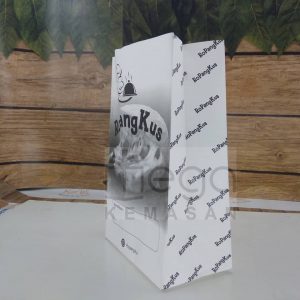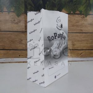 Kantong Kertas RopangKus, Yogyakartas memproduksi Kantong Kertas Semacam Roti Bakar, kantong kertas tersebut menggunakan kertas erzat atau kertas Barier spesifikasi lengkap sebagai berikut: