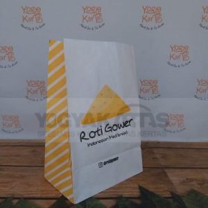 Kantong Kertas Roti Gower, Yogyakartas memproduksi Kantong Kertas Untuk Roti pesanan dari kota sendiri yaitu Yogyakarta. Kantong kertas tersebut menggunakan kertas erzat atau kertas Barier spesifikasi lengkap sebagai berikut: