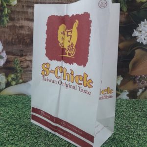 Kantong Kertas S-Chick , Yogyakartas memproduksi Kantong Kertas untuk kemasan ayam tepung pokpok, kantong kertas tersebut menggunakan kertas erzat atau kertas Barier spesifikasi lengkap sebagai berikut: