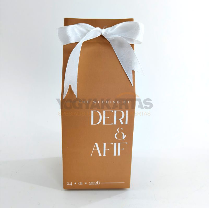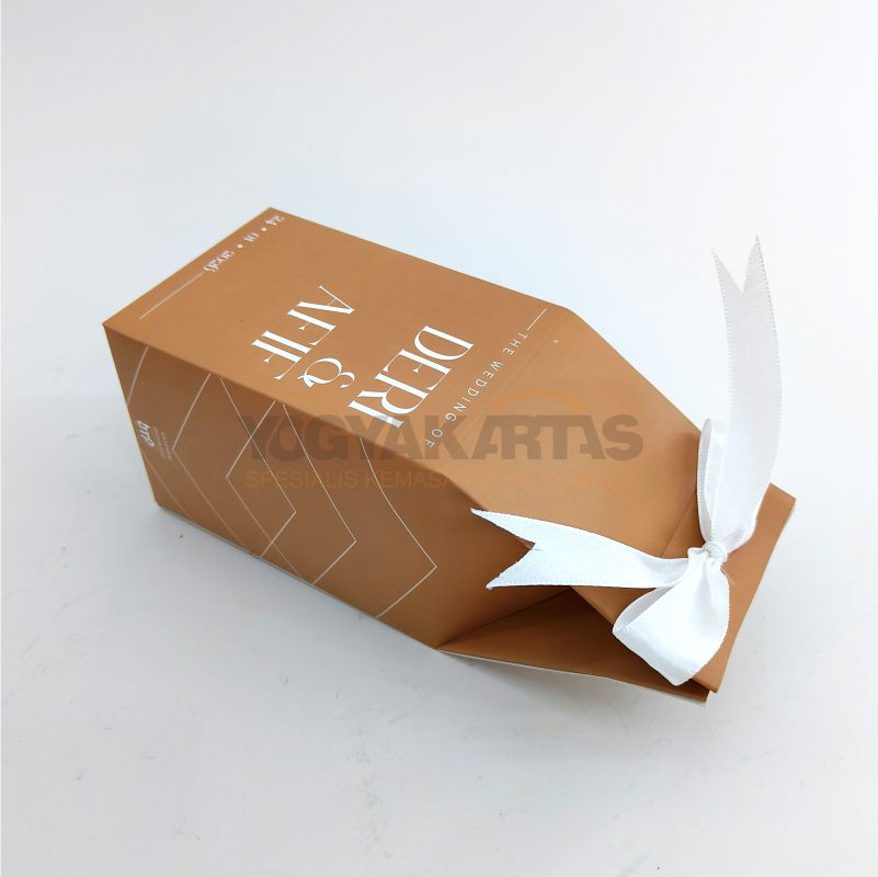 Kemasan Souvenir Pernikahan di PT. Yogyakartas Mega Grafika memproduksi kemasan souvenir dengan bahan kertas kraft coklat, duplex dan ivory.